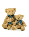 Light brown bear with tartan ribbon, Contrast pads on paws and feet, Beans filled bottom and feet, Complies with EN71 regulations, Suitable for all ages